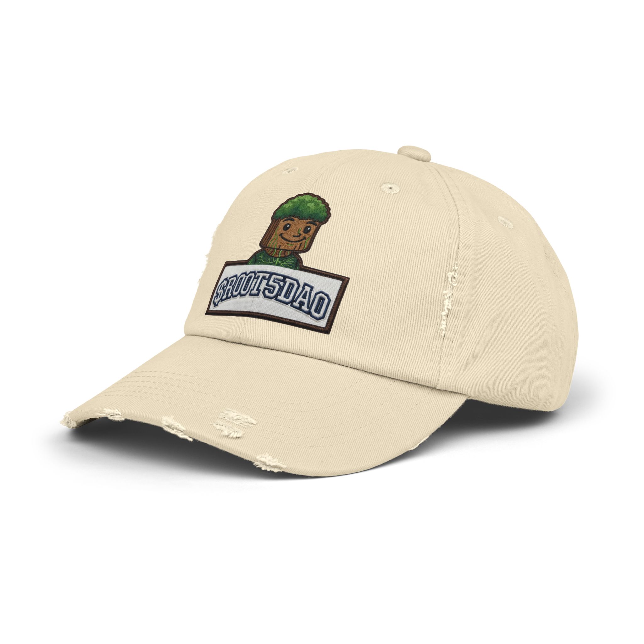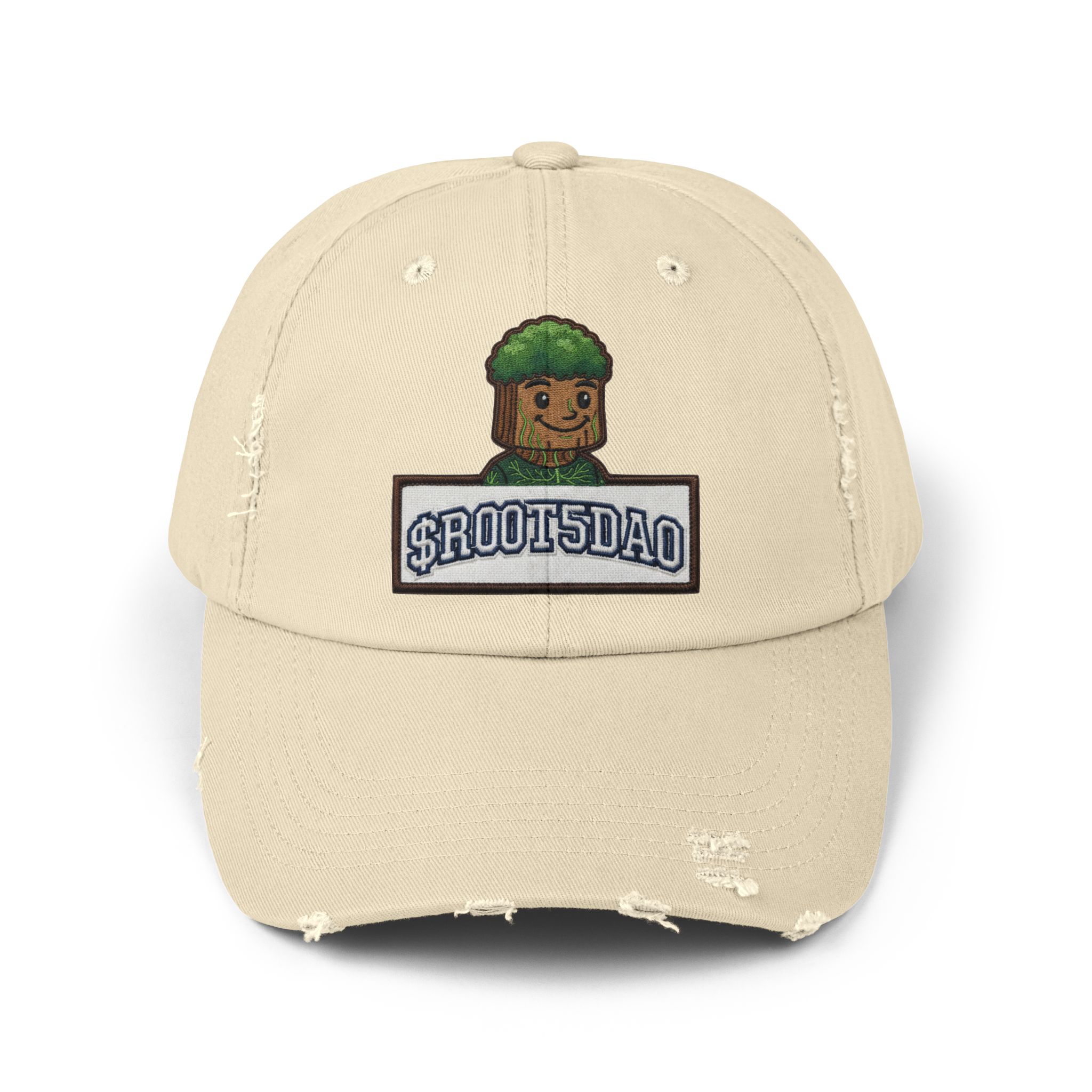 This well-worn cap settles onto your head like an old friend — soft, faded, and full of character. The ROOT5 DAO MAIN MAN ROOT Character design sits subtly on the crown, blending into the hat’s lived-in texture so it reads like a personal emblem rather than a loud logo. Wear it on slow mornings with a coffee, on runs into town, or when you need a low-key piece that carries a story. The distressed twill and low-profile shape make it effortless to pair with layered streetwear or a simple tee. Each cap’s unique distressing and color shifts mean every piece tells its own small history — familiar, comfortable, and quietly distinctive.